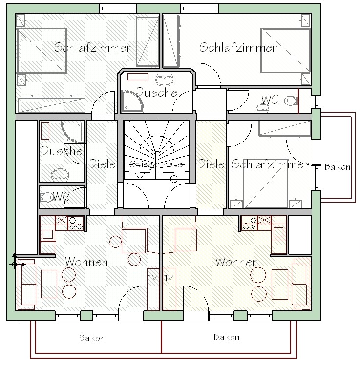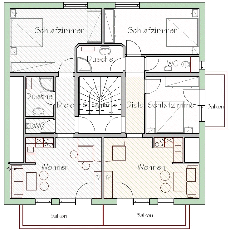 Die Appartment A + B verfügen über Balkone an der Sonnenseite.